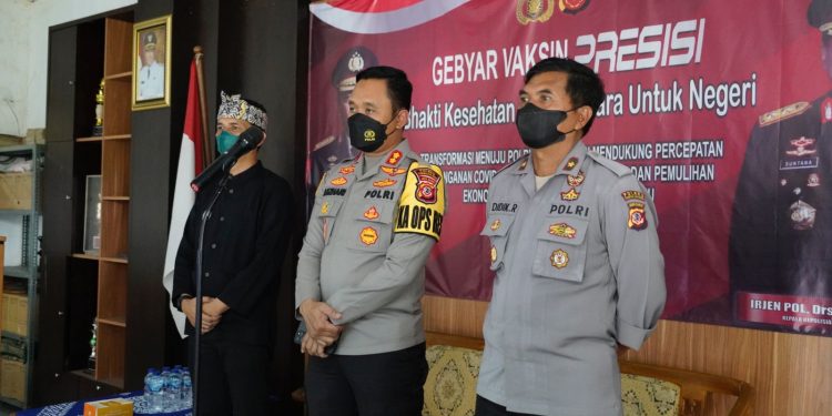 Kapolres Tasikmalaya Kota AKBP Aszhari Kurniawan, SH., S.I.K. M.Si. didampingi Kabag Ops Kompol Shohet, SH., MH. meninjau pelaksanaan kegiatan Vaksinasi Anak Usia 6-11 tahun yang digelar di Madrasah Ibtidaiyah Pangkalan Indihiang.