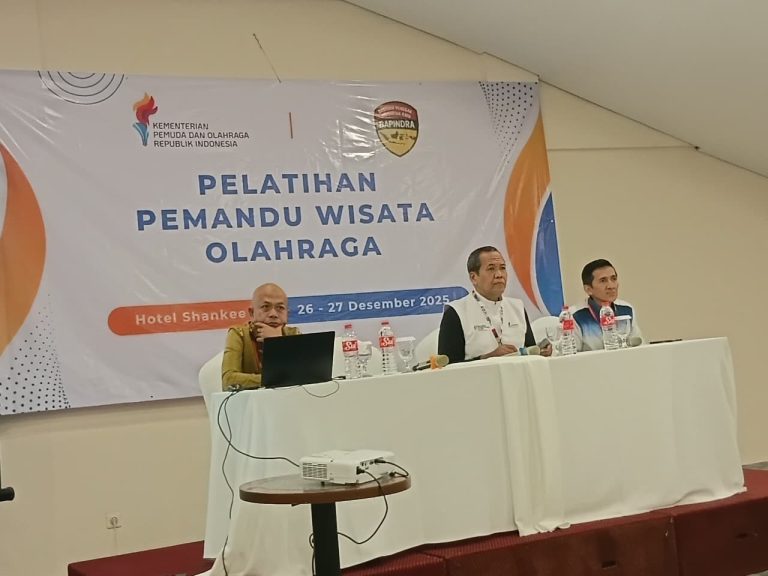 Suaramediaindonesia.com – Jakarta – Badan Pengembangan Industri dan Riset Olahraga (BAPINDRA) bekerja sama dengan Kementerian Pemuda dan Olahraga (Kemenpora) RI menggelar Pelatihan Pemandu Wisata Olahraga selama dua hari, 26–27 Desember 2025, bertempat di Hotel Shankee, Kuningan, Jakarta. Kegiatan ini bertujuan mencetak pemandu wisata olahraga yang profesional, kompeten, dan berwawasan nasional guna mendukung pengembangan industri olahraga serta ekonomi kreatif.