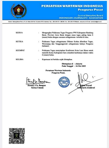 nampak terdapat kejanggalan atas posisi strukturisasi PWI KBB pasca Sdr. Hendra Hidayat yang kepegurusannya sudah tidak berlaku lagi (masa Jabatannya). Dengan diterbitkannya Surat Keputusan Nomor : 885/PWI-P/LXXVIII/2025.