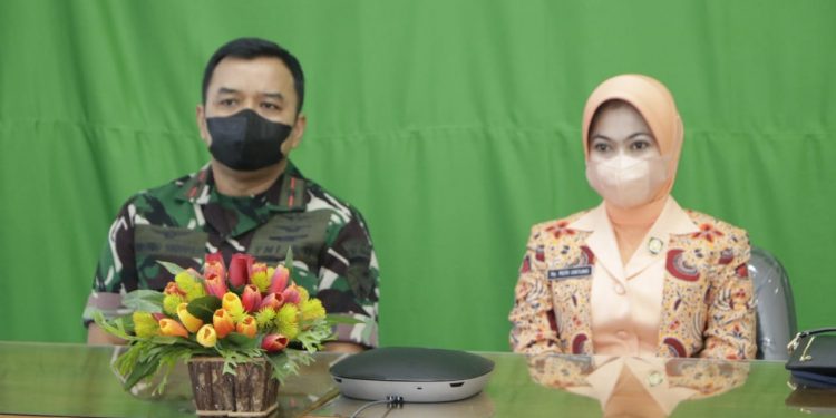 Magetan | Komandan Lanud Iswahjudi Marsekal Pertama TNI M. Untung Suropati, S.E beserta Ketua Yasarini Pengurus Cabang Lanud Iswahjudi Ny. Reri Untung Suropati, mengikuti jalannya penutupan FESA (Festival Edukasi Sekolah Angkasa) Ke V tahun 2021 secara virtual di gedung serbaguna Kantor Yasarini Lanud Iswahjudi. Selasa (25/1/22).