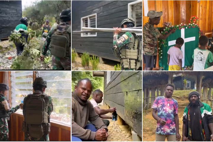 LANNY JAYA – Personil Pos Malagai karya bakti giat membersihkan Gereja Pinime, di Distrik Malagai Numbukawi Lanny Jaya.