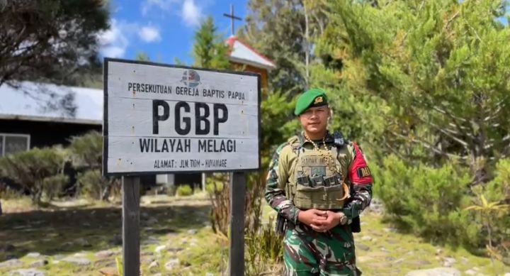 LANNY JAYA – Personil Pos Malagai karya bakti giat membersihkan Gereja Pinime, di Distrik Malagai Numbukawi Lanny Jaya.