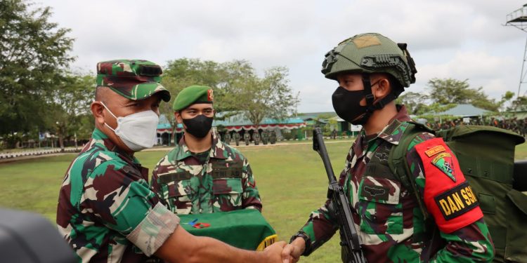 Sambas |Panglima Kodam XII/Tanjungpura Mayjen TNI Sulaiman Agusto, S.I.P., M.M., diwakili Kabaglat Rindam XII/Tpr, Kolonel Inf Edison Lambe, S.Pd., menutup Latihan Pratugas Operasi Satgas Yonif 645/GTY dalam rangka operasi Pamtas Darat RI-Malaysia di wilayah Kalbar TA 2022 bertempat di Lapangan Apel Mayonif 645/GTY.