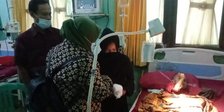 CIANJUR | Wujud kepedulian kepada Anak Penderita Gizi Buruk, Ketua Yayasan Nirwana Mandala Cendekia (NMC) Evi Susanti, berkunjung ke RSUD Sayang Cianjur didampingi Banbinsa Koramil 0806-14/Kadupandak Serda Hamzah, untuk melihat secara langsung kondisi Anak tersebut.