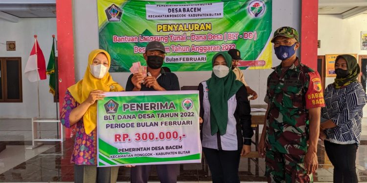 Untuk kegiatan penyaluran BLT DD saat ini dilaksanakan di Kantor Desa Bacem Kec.Ponggok Kab.Blitar, Senin (7/2/2022).