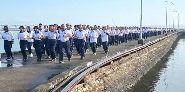 Olahraga tersebut dimulai dengan pemanasan, senam SKJ, senam Jalesveva Jayamahe versi Jawa, Lari sejauh 4 Kilometer di area Mako Lantamal VI yang kemudian dilanjutkan dengan olahraga mandiri serta Bola Volly dan Takraw.