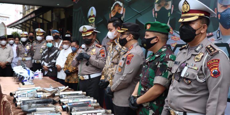 “Ya saya mewakiii Bapak Kapolda, hari ini memimpin langsung kegiatan pemusnahan knalpot yang tidak sesuai standar. Kami akan terus melakukan operasi kepada para pengendara yang meggunakan knalpot tidak standar, atau knalpot brong ini, yang digelar sejak 10 Januari 2022 lalu. Hal ini dalam rangka menuju zero knalpot brong,” jelasnya.