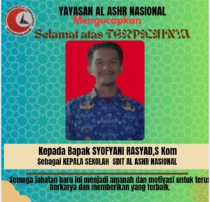SDIT Al Ashr Nasional Miliki Kepsek Baru: “Sofyani Rasyad,S.Kom Terpilih Hasil Seleksi”