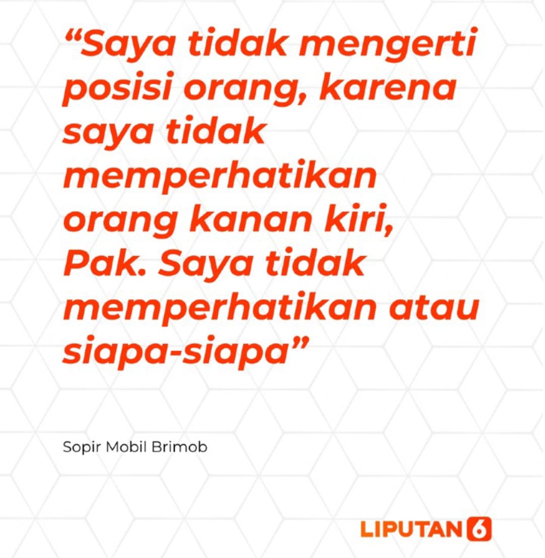 “Jalanan itu sudah banyak batu, Pak. Jadi, saya tidak mengerti apa-apa itu. Jadi, saya hantam saja. Karena kalau tidak selesai, Pak, sudah. Massa penuh, Pak,” ungkap sang sopir dengan suara berat di hadapan majelis pemeriksa.