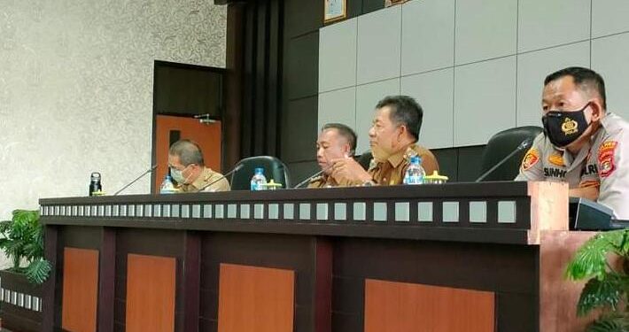 TUBABA | Bupati Tulangbawang Barat (TUBABA) Provinsi Lampung Ir. H. Umar Ahmad, S.P., bersama Wakil Bupati Fauzi Hasan, S.E., M.M., Pimpin Rapat Kordinasi (Rakor) satuan tugas (Satgas) Covid-19 Kabupaten Tubaba dalam upaya pengamanan, Pencegahan, dan Penyebaran Covid-19 Varian baru Omicron.