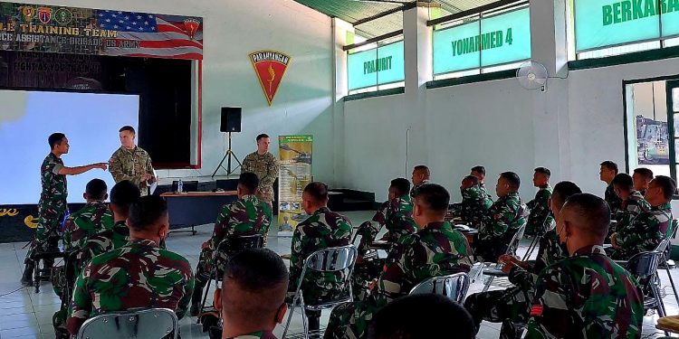 “Hari ini, melakukan latihan bersama pemateri Captain Nickolas Garret Walker. Dirinya menyampaikan tentang materi kecabangan Armed, yang dikuti 50 personel dari Yonarmed. Sementara materi yang diberikan, diantaranya bagaimana pelayanan meriam, pimpinan penembakan, peninjauan tembakan, dan rencana bantuan tembakan,” tutur Kolonel Inf Arie Tri Hedhianto.